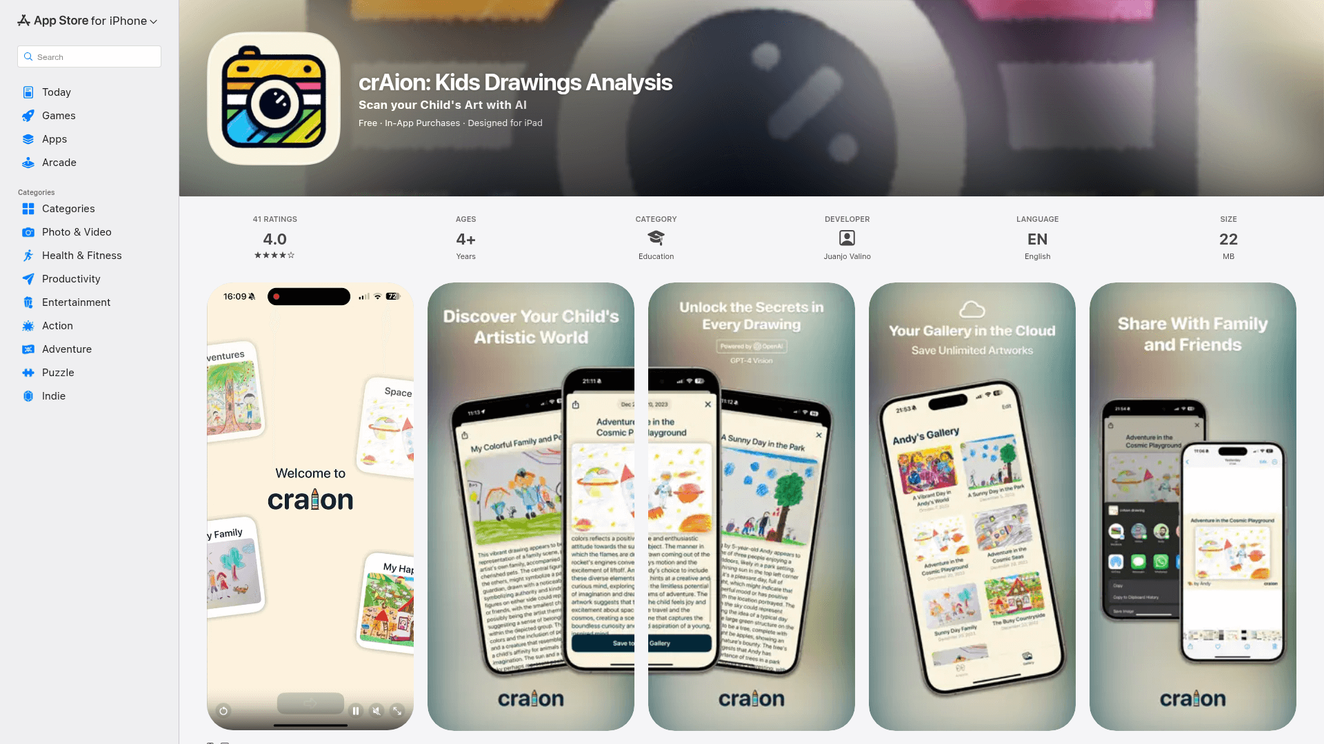 crAion: Kids Drawings Analysis is an innovative AI-powered application designed for parents who want to understand their children's inner world through art. By utilizing advanced image recognition and interpreting algorithms, the tool scans physical drawings to reveal potential emotions, developmental milestones, and creative patterns hidden within the sketches. Beyond its analytical capabilities, crAion serves as a comprehensive digital ecosystem for families. It features a secure cloud-based gallery where years of artistic progress can be stored, organized by child profile, and shared with loved ones. The app is built with family privacy at its core, offering an ad-free environment and seamless profile switching for multiple children, making it a valuable companion for tracking creative growth.