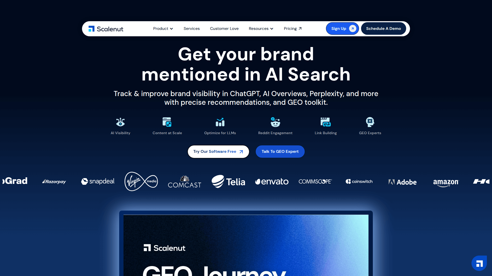 Scalenut is a comprehensive AI-powered SEO and content marketing platform designed to manage the entire content lifecycle. It specializes in 'GEO' (Generative Engine Optimization), helping brands appear not just in traditional search results but also within AI-driven answers like ChatGPT, Perplexity, and Google AI Overviews. The platform offers a multi-layered approach to organic growth, featuring the GEO Core for content creation, GEO Watchtower for tracking AI crawl behavior, and Social UpReach for brand monitoring on platforms like Reddit. By combining deep keyword research, automated clustering, and real-time optimization guidance, Scalenut empowers marketing teams to plan, write, and optimize content that both humans and AI algorithms trust. Whether you prefer a self-service software approach or fully managed expert services, Scalenut provides the tools to build topical authority and drive sustainable business results through organic search.